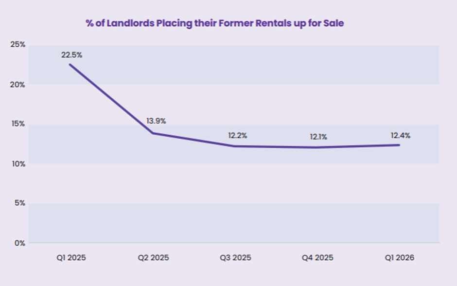 The good news for letting agents is that the landlord exodus we saw occurring has certainly calmed down. In our latest Property and Homemover Report, we found that the number of former rental properties put up for sale in Q1 2026 has almost halved compared to Q1 2025, declining from 22.5% to 12.4%.