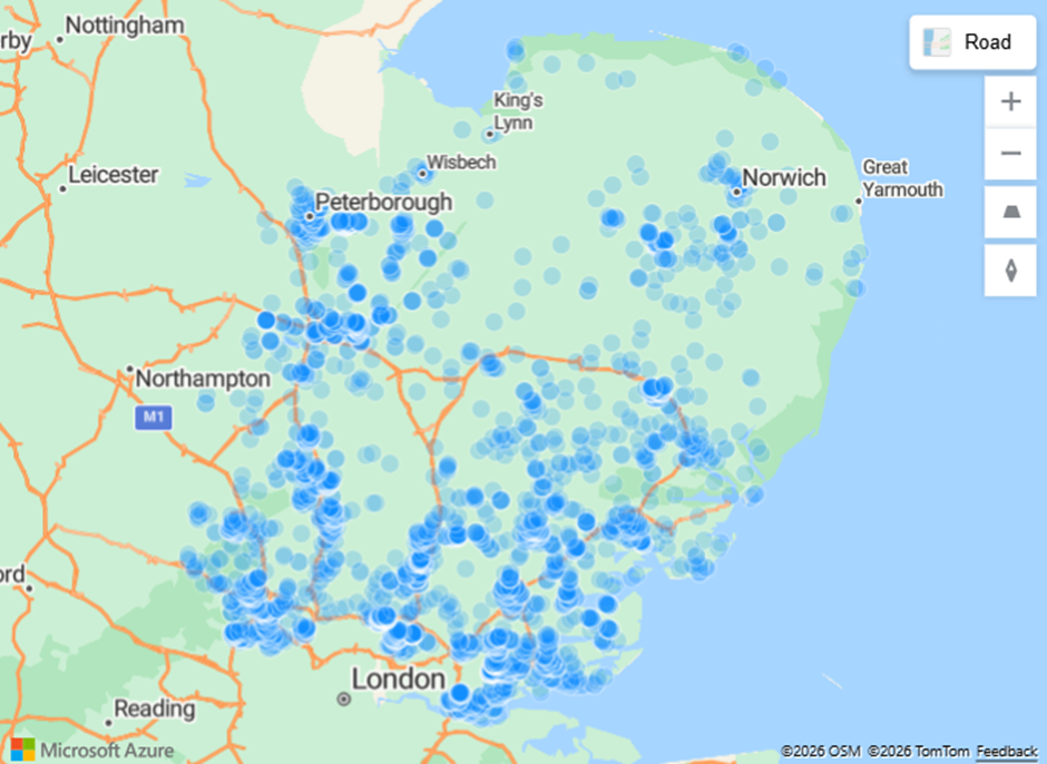 We have plotted all self-employed New Instructions in 2025 and in this article, we will take a tour of the UK to find out where there are concentrations of instructions from these agents.